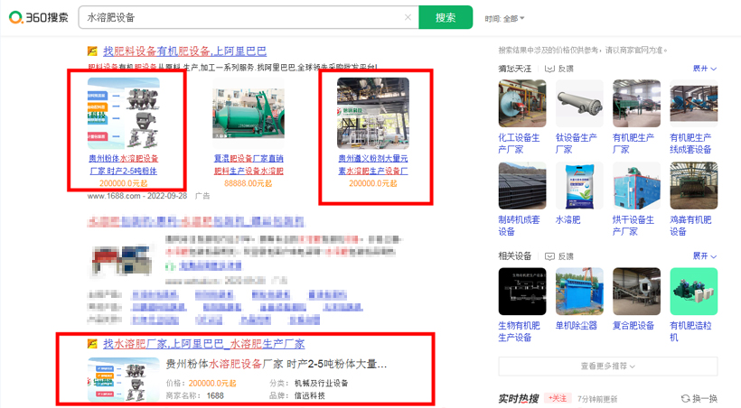 (以上為360搜索“水溶肥設(shè)備”,阿里巴巴在首頁主推的多個(gè)展現(xiàn)信息是信遠(yuǎn)科技)