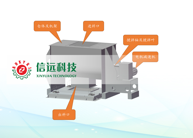 2.攪拌采用單軸雙螺旋或雙軸槳葉式結(jié)構(gòu),物料可充分混合,達(dá)到混合均勻度。