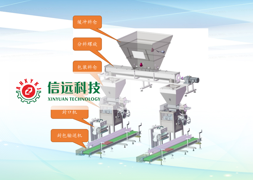 安徽信遠(yuǎn)包裝科技小編接下來為大家講解全自動(dòng)粉劑水溶肥生產(chǎn)設(shè)備中計(jì)量包裝系統(tǒng)部分