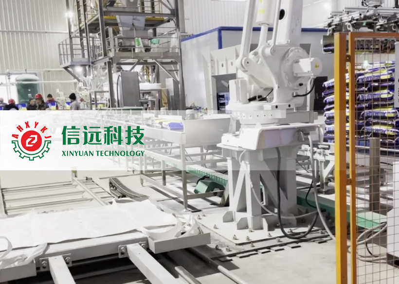 ■集自動給袋、上袋、夾袋、計量、充填、縫包、輸送、倒包、振實、壓平、理包、機器人碼垛、托盤庫于一體