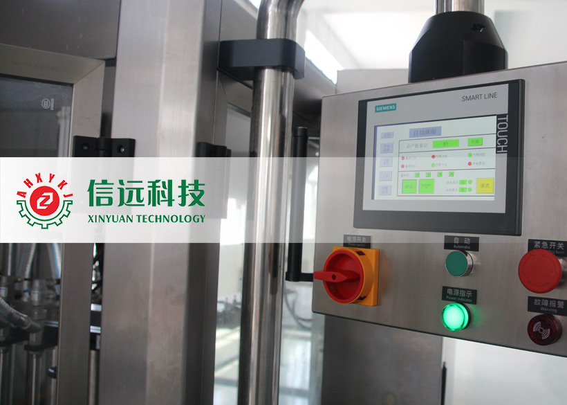 信遠科技瓶裝液體全自動灌裝機組,由理瓶機、灌裝機、上蓋/旋蓋機和貼標噴碼機組成??梢怨嘌b單瓶容量在50-1000ml范圍之間的液體物料,生產(chǎn)企業(yè)可以根據(jù)自己的需要,選擇不同型號的灌裝機和配套輔機。這套機組設備采用不銹鋼材質(zhì)設計制造,適用于食品、化工、醫(yī)藥等行業(yè)不帶氣體的流體、半流體物料的計量灌裝,具有自動完成理瓶、進瓶、定位、灌裝、出瓶、上蓋、旋蓋、鋁箔封口、貼標、噴碼等一系列功能。
