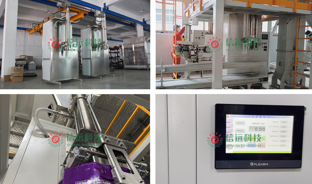 信遠科技新一代升降式粉劑包裝機(半自動機型),由雙螺旋變頻供料系統(tǒng)、充填稱重系統(tǒng)、夾袋升降系統(tǒng)、除塵系統(tǒng)以及PLC總控系統(tǒng)等自動化裝置組成。該機的主要特點是采用升降式底充的方式對包裝袋進行充填稱重,下料口在升降過程中與包裝袋底部形成最小落差距離,加上除塵輔助系統(tǒng),可以有效防止粉狀物料在充填過程中粉塵外溢,確保充填速度和稱重精度。適用于5kg-25kg超細粉物料和常規(guī)粉狀粉劑物料的自動稱重包裝。