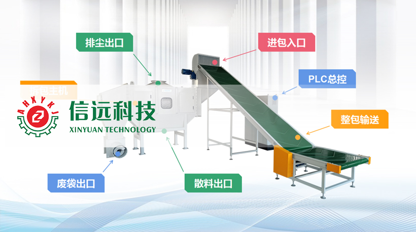 信遠(yuǎn)科技新一代全自動(dòng)破包機(jī),由運(yùn)送、破包、過(guò)濾、排塵、廢袋輸出等裝置組成。該機(jī)采用自動(dòng)切包和滾筒篩分的方式,對(duì)25-50kg重量的袋裝粉料或顆粒料在密閉狀態(tài)下進(jìn)行拆包、篩分和卸料。適用于不同材質(zhì)和型號(hào)的編織袋、PP/PE袋、牛皮紙袋等袋裝物料的拆包卸料工作。