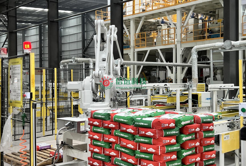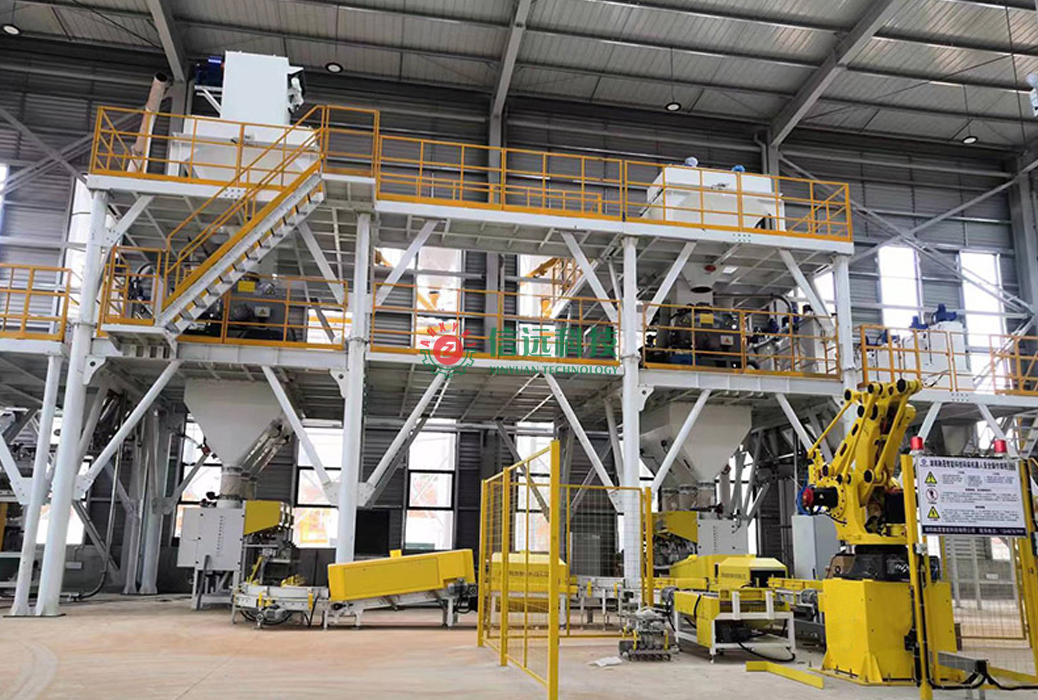 信遠(yuǎn)科技全自動膩?zhàn)臃凵a(chǎn)線,采用高效螺帶干粉混合機(jī),該機(jī)是在多代機(jī)型的技術(shù)基礎(chǔ)上融合多種優(yōu)勢研發(fā)而制,具有自動喂料,氣動放料,筒壁無積塊、無死角的優(yōu)良性能。年產(chǎn)兩到三萬噸左右的小噸位膩?zhàn)臃凵a(chǎn)設(shè)備,一般情況下會用到4-6個原料罐,合理滿足各種配料的供給需求。計量系統(tǒng)在計量螺旋的配合下,把料倉中的原料導(dǎo)入計量倉,通過傳感器的數(shù)據(jù)反饋,實(shí)現(xiàn)計量包裝。輸送線配備整形、清灰、噴碼多道工序,保證每一袋產(chǎn)品外觀干凈整潔、形狀整齊化一,然后碼垛、纏繞覆膜。大大提高出廠產(chǎn)品的外觀檔次,實(shí)實(shí)在在的增加了產(chǎn)品的市場競爭力。