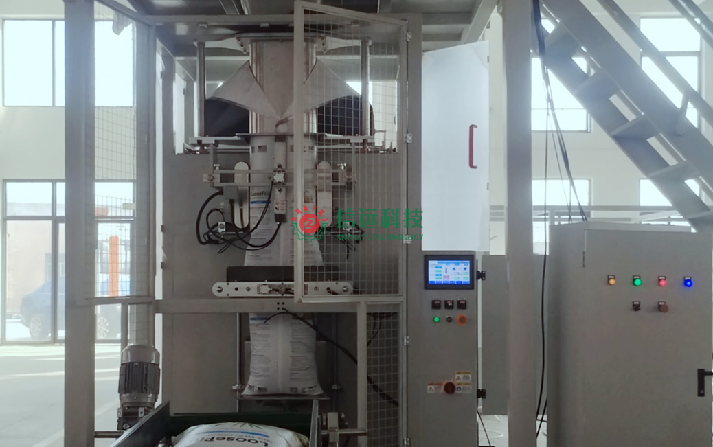 安徽信遠包裝科技有限公司作為國內知名的農資農化設備專業(yè)制造商,為該美國客戶提供的設備是一套制袋式重袋包裝系統(tǒng),由緩存料倉、計量系統(tǒng)、生產平臺、制袋包裝機、輸送機和電氣控制系統(tǒng)組成。制袋包裝機可以自動完成制袋成型、充填振實、扎孔排氣、封口切口、批號打碼等作業(yè);包裝機后端與輸送機相聯(lián),自動完成爬坡、直線輸送和轉向輸送等動作,滿足了客戶的生產需要。