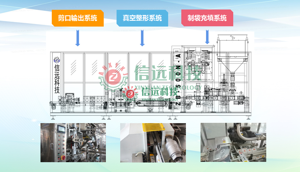 信遠(yuǎn)科技全自動(dòng)制袋包裝機(jī)組,可以生產(chǎn)粉料、顆粒料、液體料,整機(jī)結(jié)構(gòu)采用不銹鋼材質(zhì)制造。該機(jī)由PLC程序控制,具有自動(dòng)完成送料、計(jì)量、制袋、充填、封口、切包、打印、計(jì)數(shù)、輸送等一系列功能,智能觸摸屏可中英文操作,操作直觀簡(jiǎn)便。包裝機(jī)采用高精度伺服運(yùn)膜系統(tǒng),配合光電自動(dòng)定位跟蹤系統(tǒng),運(yùn)膜平穩(wěn),確保制作袋型美觀結(jié)實(shí)。
