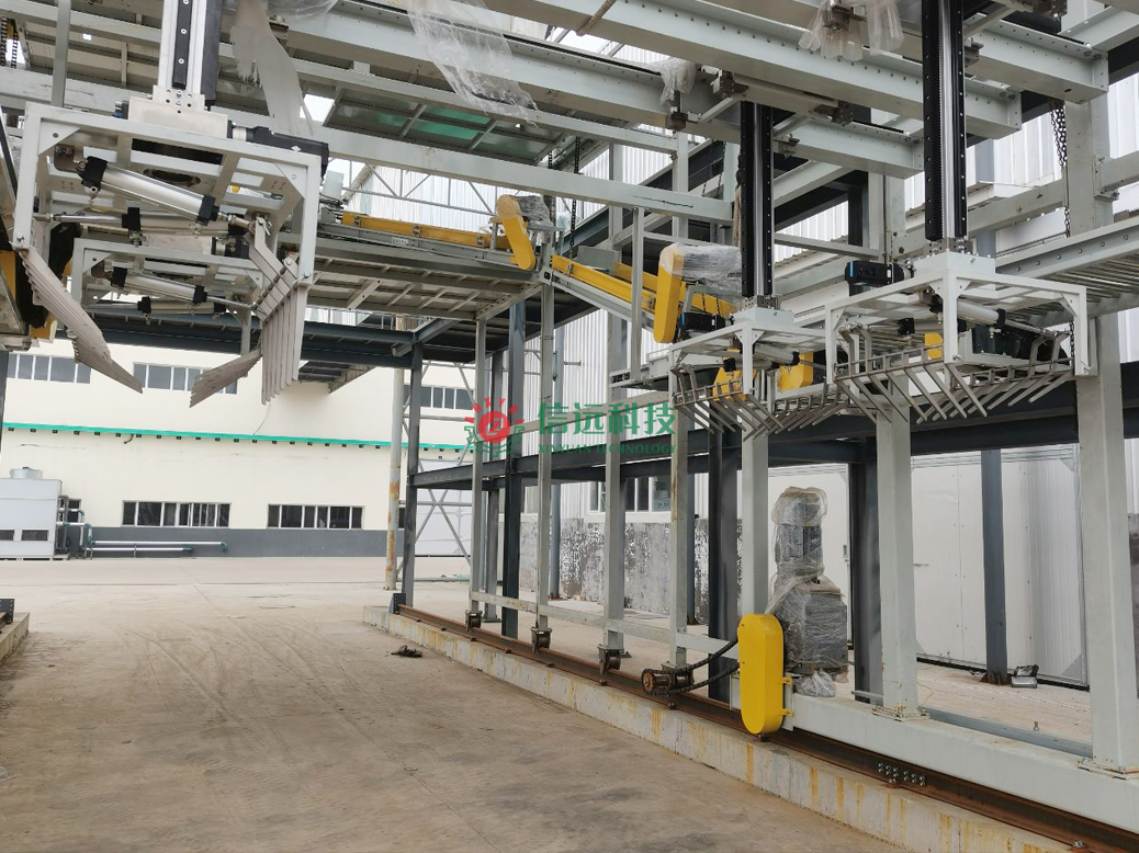 信遠(yuǎn)科技自動(dòng)化裝車(chē)系統(tǒng)是一種集機(jī)械、電子、智能控制等技術(shù)于一體的自動(dòng)化設(shè)備。貨車(chē)到位后,傳感器和視覺(jué)識(shí)別系統(tǒng)對(duì)車(chē)廂進(jìn)行掃描,獲取車(chē)廂的尺寸、形狀等信息,然后智能算法根據(jù)這些信息計(jì)算出最佳的貨物擺放位置和裝車(chē)路徑。接著,四個(gè)獨(dú)立抓手按照系統(tǒng)指令準(zhǔn)確抓取貨物,并將其搬運(yùn)至車(chē)廂內(nèi)指定位置進(jìn)行碼放。在裝車(chē)過(guò)程中,傳感器實(shí)時(shí)監(jiān)測(cè)貨物的擺放情況,時(shí)刻保障較佳的垛型碼放。