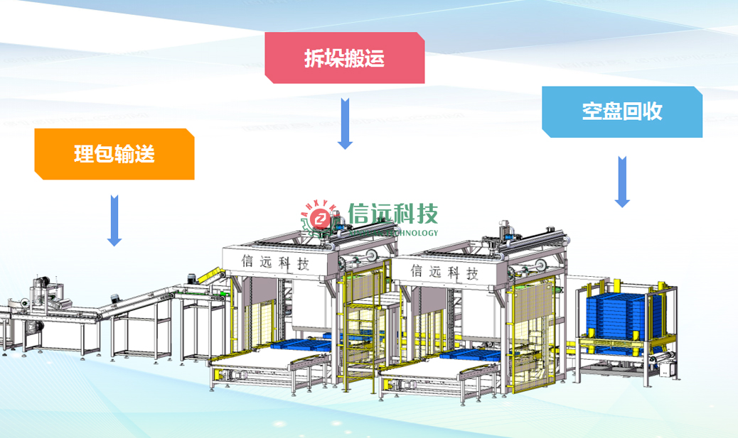 在生產(chǎn)效率至上的時(shí)代,自動(dòng)化的拆垛系統(tǒng)不只是技術(shù)的進(jìn)步,更是幫助生產(chǎn)企業(yè)邁向智能化、高效化的生產(chǎn)工具。選擇信遠(yuǎn)科技自動(dòng)拆垛機(jī),提前為強(qiáng)化企業(yè)未來競(jìng)爭(zhēng)力鋪設(shè)基石,讓每一次投入與選擇,都能轉(zhuǎn)化為持久的生產(chǎn)力紅利。如果您的企業(yè)有這方面的需求,歡迎聯(lián)系我們,獲取定制化解決方案,信遠(yuǎn)科技將與您一起共創(chuàng)高效、安全、成本優(yōu)化的新紀(jì)元。